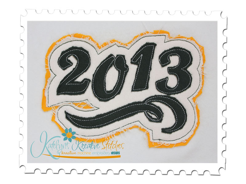 Our 2013 Distressed Applique is a stylish and quick stitch that the Teens will Love.  The numbers are done in a distressed technique.  The stitch out is a little different than most appliques so please make sure you download the instructions as well.  Once you have done the first one the rest are super simple.  It will fit the 5x7, 6x10 and 11x7 hoop sizes.