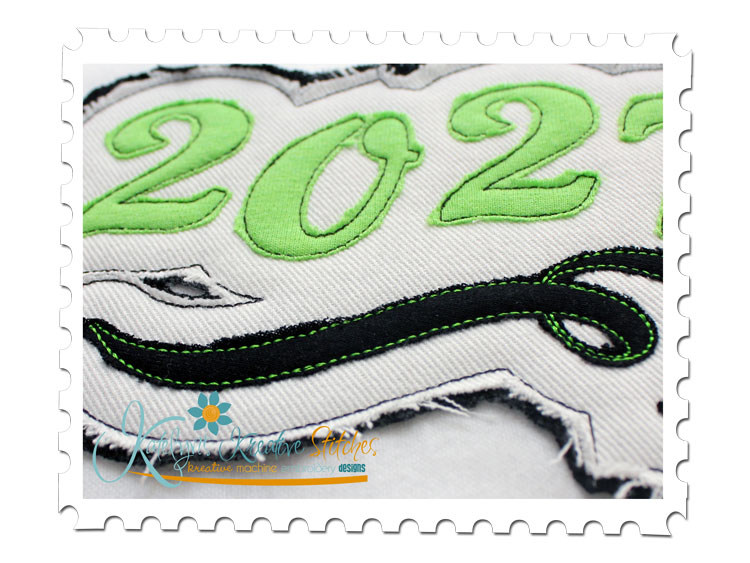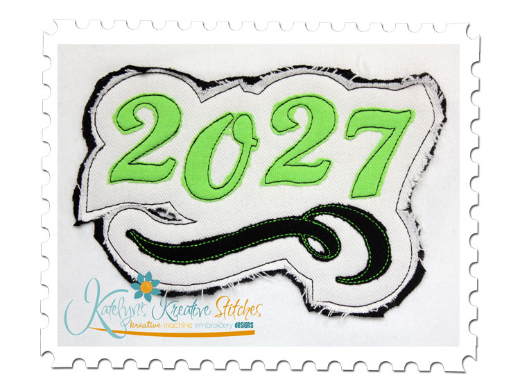 Our 2027 Distressed Applique is a stylish and quick stitch that the Teens will Love. The numbers are done in a distressed technique. The stitch out is a little different than most appliques so please make sure you download the instructions as well. Once you have done the first one the rest are super simple. It will fit the 5x7, 6x10 and 11x7 hoop sizes.