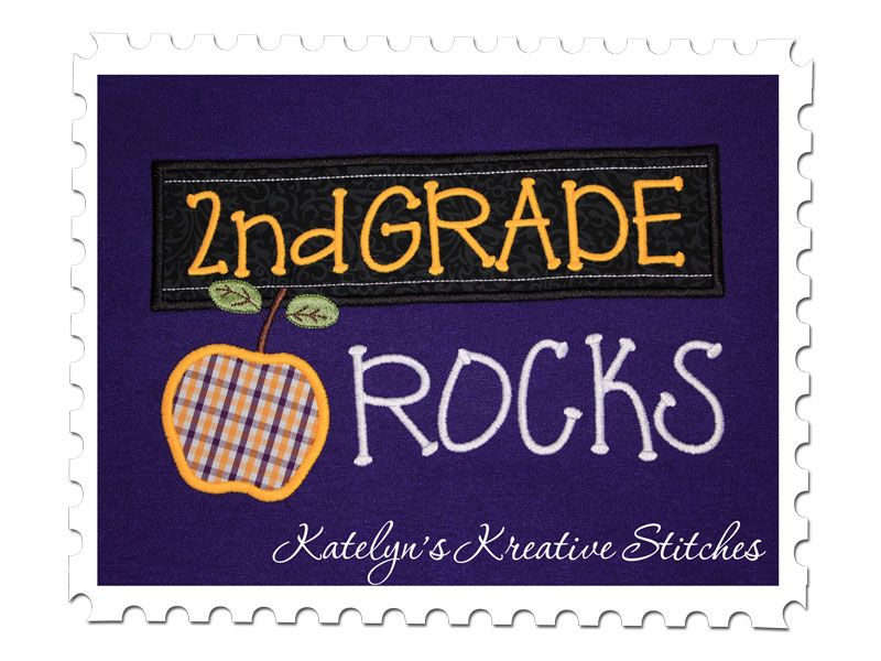 Our 2nd Grade Rocks and Chalkboard Applique is perfect for Back to School. It's not just for kids either. This design would be great for Teachers too. I can see Tees and Totes galore. This applique design will fit hoop sizes 4x4, 5x7 and 6x10.