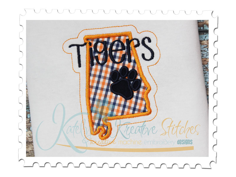 Our Alabama State Applique will fit the 4x4, 5x7, 6x10 and 9x9 hoops. The 4x4 would be perfect for a pocket tee.