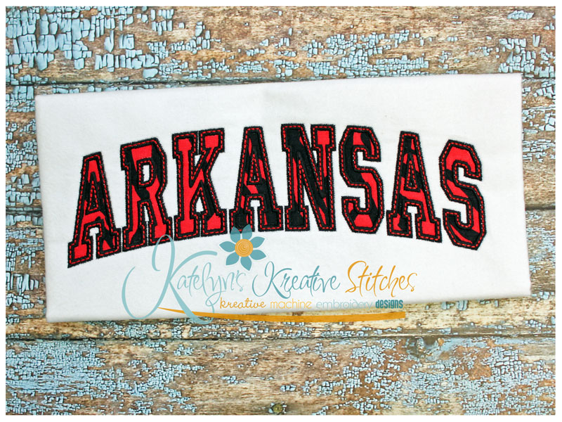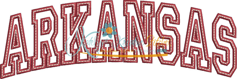 Our Arched Mascot designs will come in 5 sizes.  The 5x7, 6x10, 8x12 and 8x14 will be applique.  The smaller 4x4 size will be in a satin stitch.  These will be great for school sweatshirts and tees.  The 4x4 size will be perfect for polo's too.