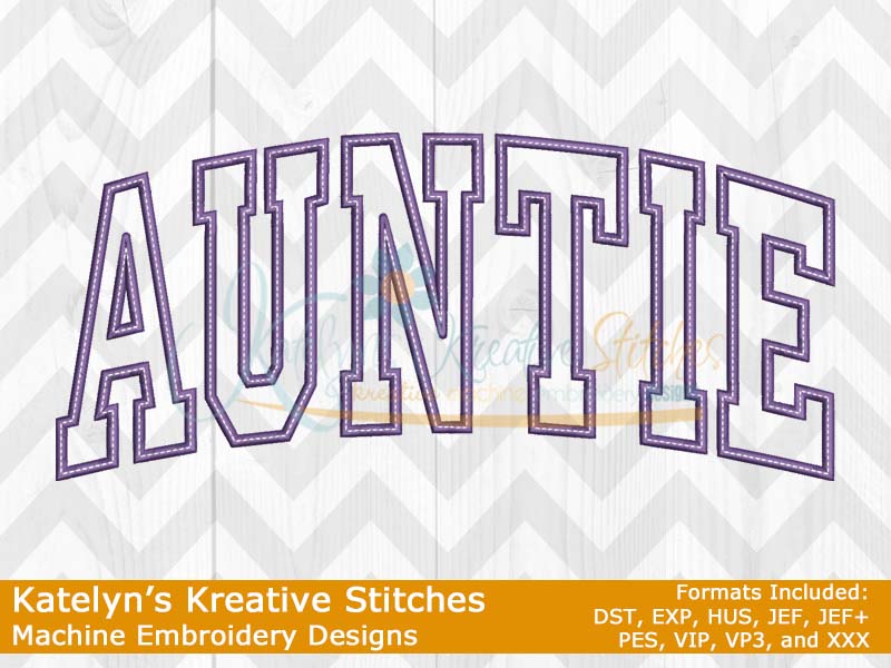 Our Arched designs will come in 5 sizes. The 5x7, 6x10, 8x12 and 8x14 will be applique. The smaller 4x4 size will be in a satin stitch. These will be great for sweatshirts and tees. The 4x4 size will be perfect for polo's too.
