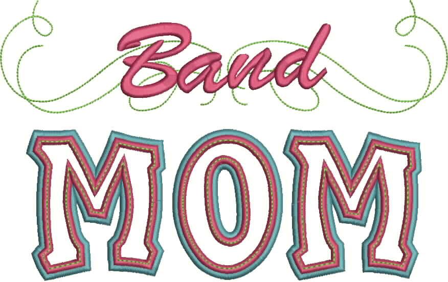 Our Band Mom Applique is a great way to show how proud you are to be a part of the team. This design gives a new twist on the word MOM. It can be stitched on Tank Tops, Tees, Sweatshirts, Jackets, Bags, Blankets and more.  The words "Band" are splashed across the top of the decrotive swirls. Also the font is done in a double satin stitch making it possible to do them in two seperate colors. This font can also be stitched in any combination.  This design will fit the hoop sizes 5x7, 6x10 and 8x12.