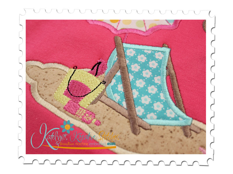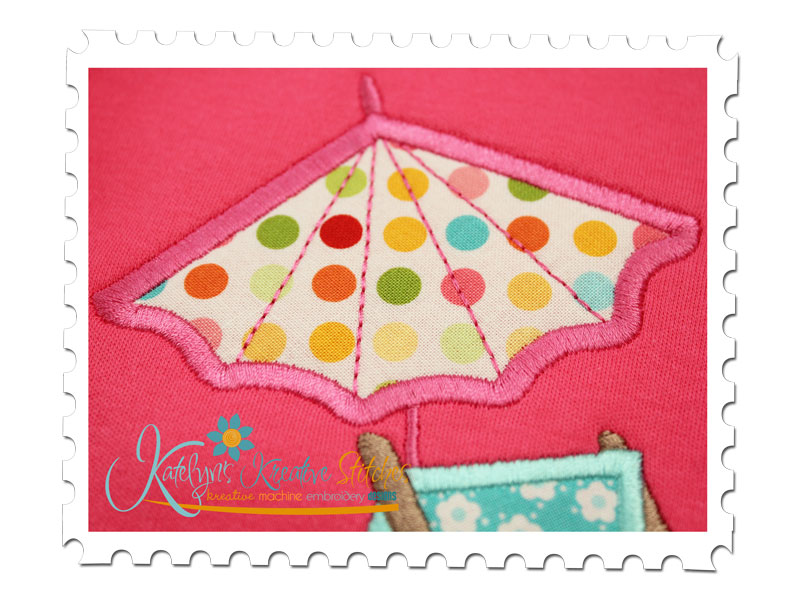 Our Beach Scene Chair and Umbrella applique is great for Beach Towels, Tees and Totes. It will fit the 5x7, 6x10 and 8x12 hoop sizes.