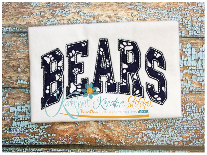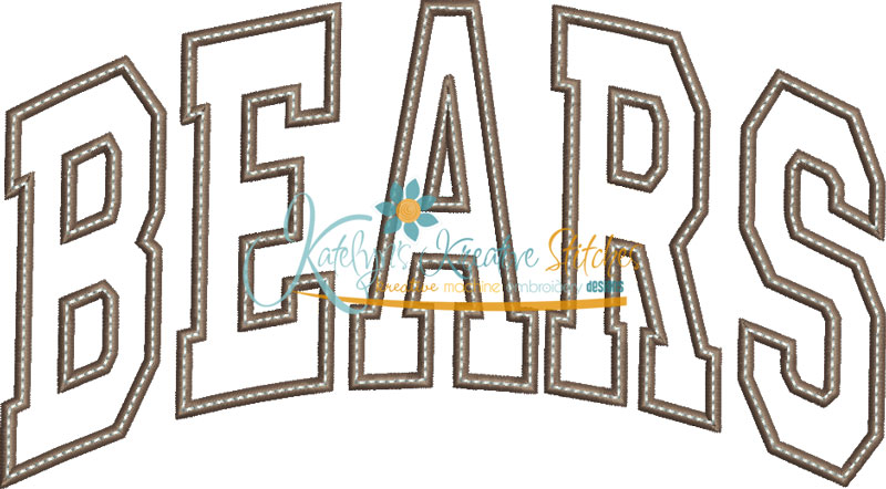 Our Arched Mascot designs will come in 5 sizes. The 5x7, 6x10, 8x12 and 8x14 will be applique. The smaller 4x4 size will be in a satin stitch. These will be great for school sweatshirts and tees. The 4x4 size will be perfect for polo's too.