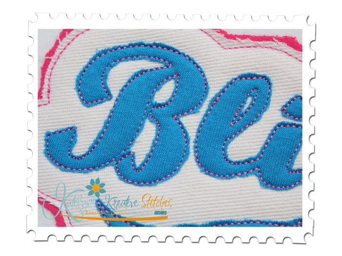 Our Distressed Applique is a stylish and quick stitch that the Teens and Adults will both love. Perfect for Tees, Sweatshirts and Hoodies. The letters are done in a distressed technique. The stitch out is a little different than most appliques so please make sure you download the instructions as well. Once you have done the first one the rest are super simple. It will fit the 5x7, 6x10 and 11x7 hoop sizes.