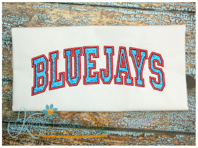Our Arched Mascot designs will come in 5 sizes. The 5x7, 6x10, 8x12 and 8x14 will be applique. The smaller 4x4 size will be in a satin stitch. These will be great for school sweatshirts and tees. The 4x4 size will be perfect for polo's too.