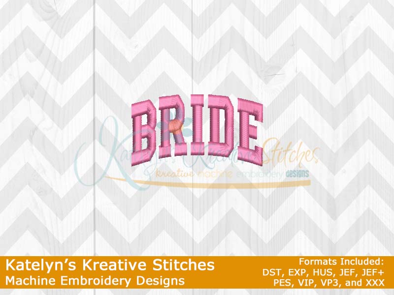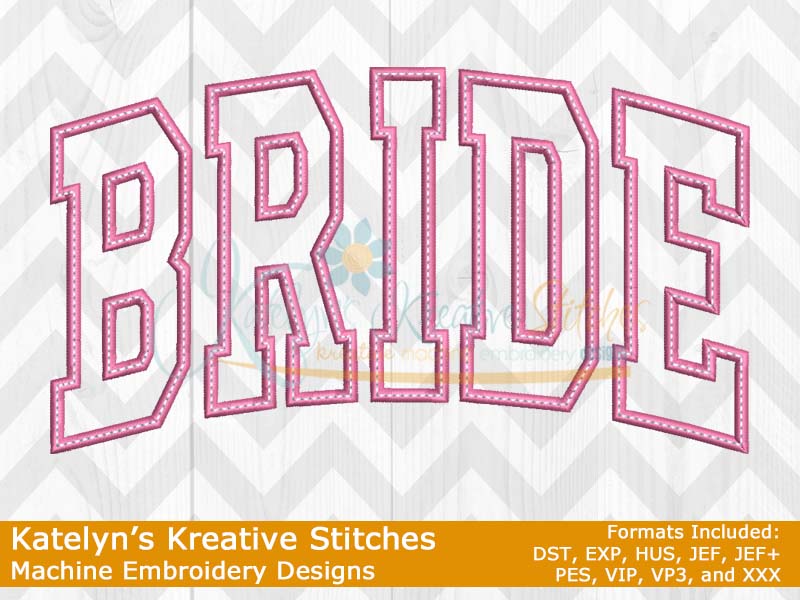 Our Arched designs will come in 5 sizes. The 5x7, 6x10, 8x12 and 8x14 will be applique. The smaller 4x4 size will be in a satin stitch. These will be great for sweatshirts and tees. The 4x4 size will be perfect for polo's too.