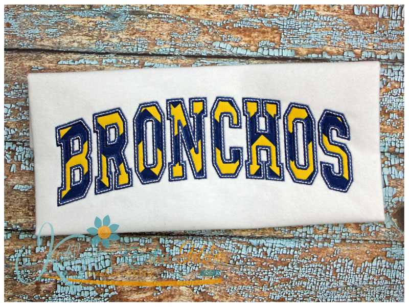 Our Arched Mascot designs will come in 5 sizes. The 5x7, 6x10, 8x12 and 8x14 will be applique. The smaller 4x4 size will be in a satin stitch. These will be great for school sweatshirts and tees. The 4x4 size will be perfect for polo's too.