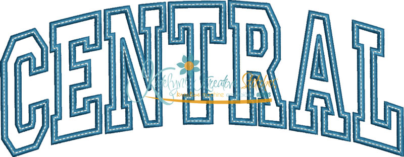 Our Arched Mascot designs will come in 5 sizes. The 5x7, 6x10, 8x12 and 8x14 will be applique. The smaller 4x4 size will be in a satin stitch. These will be great for school sweatshirts and tees. The 4x4 size will be perfect for polo's too.