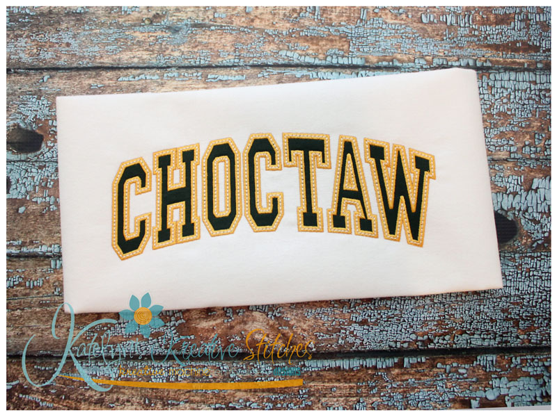 Our Arched Mascot designs will come in 5 sizes. The 5x7, 6x10, 8x12 and 8x14 will be applique. The smaller 4x4 size will be in a satin stitch. These will be great for school sweatshirts and tees. The 4x4 size will be perfect for polo's too.