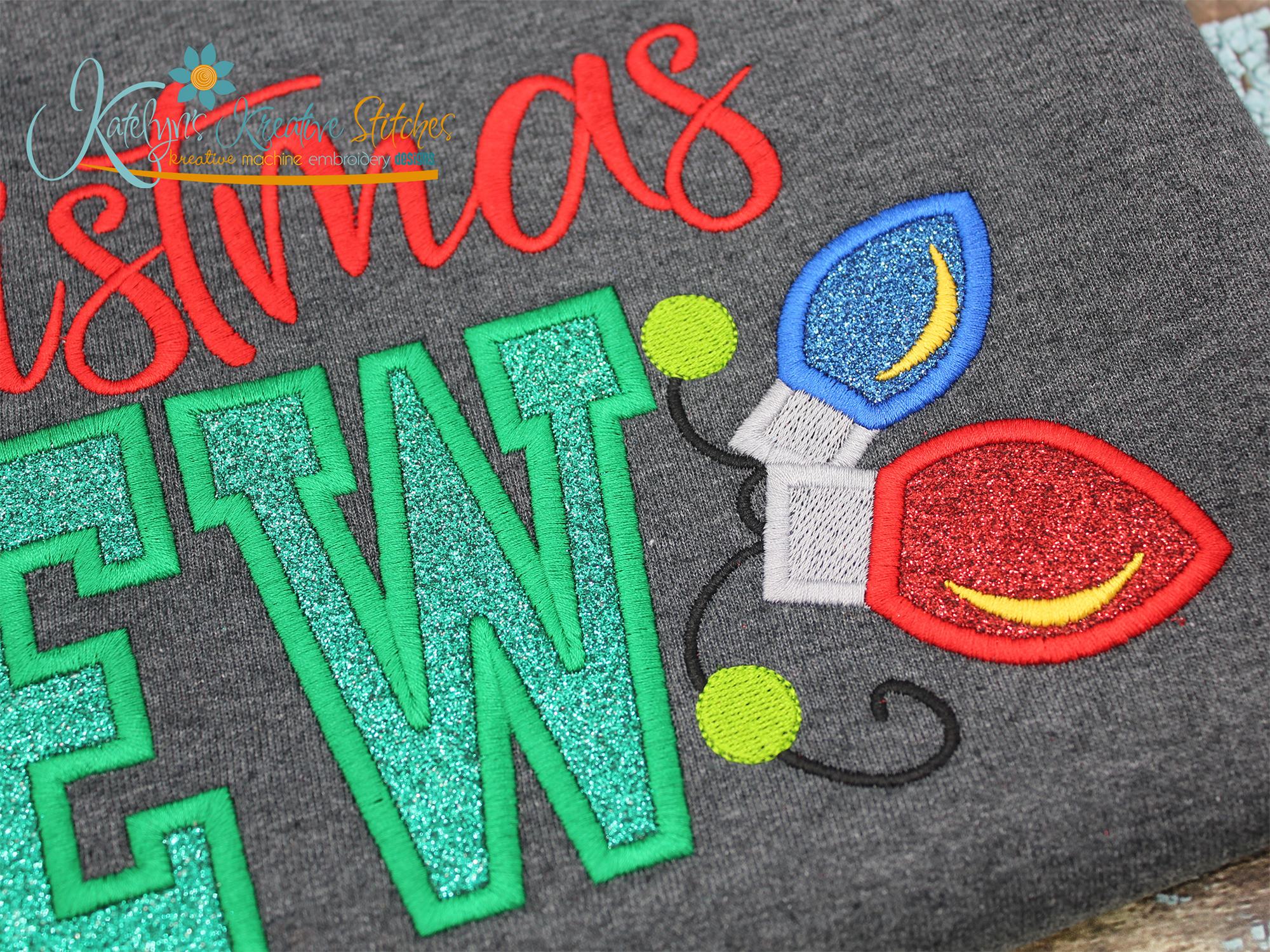 Christmas Light Bulbs Applique Embroidery