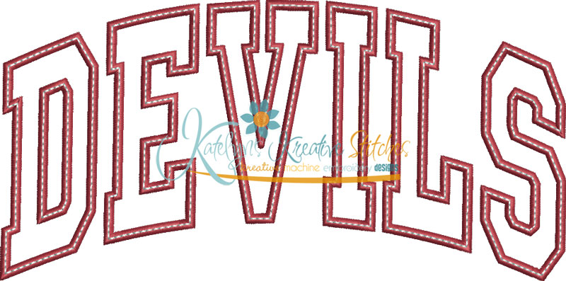 Our Arched Mascot designs will come in 5 sizes. The 5x7, 6x10, 8x12 and 8x14 will be applique. The smaller 4x4 size will be in a satin stitch. These will be great for school sweatshirts and tees. The 4x4 size will be perfect for polo's too.