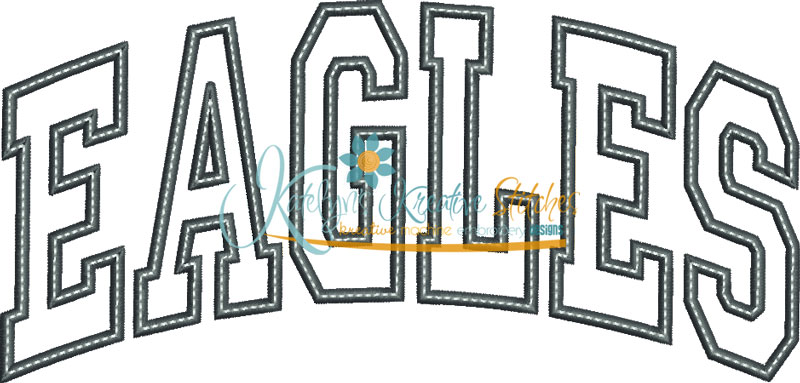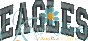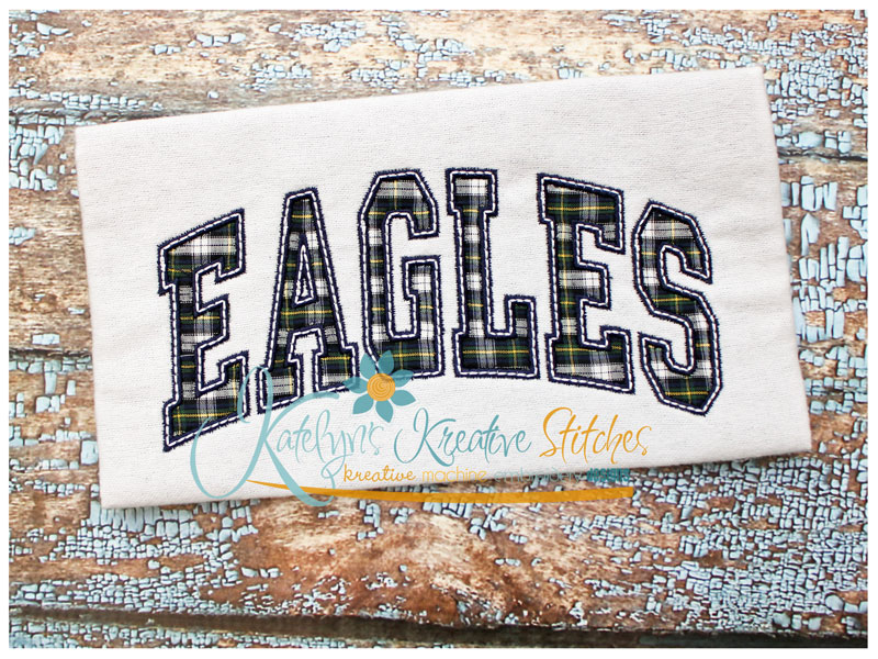Our Arched Mascot designs will come in 5 sizes. Â The 5x7, 6x10, 8x12 and 8x14 will be applique. Â The smaller 4x4 size will be in a satin stitch. Â These will be great for school sweatshirts and tees. Â The 4x4 size will be perfect for polo's too.