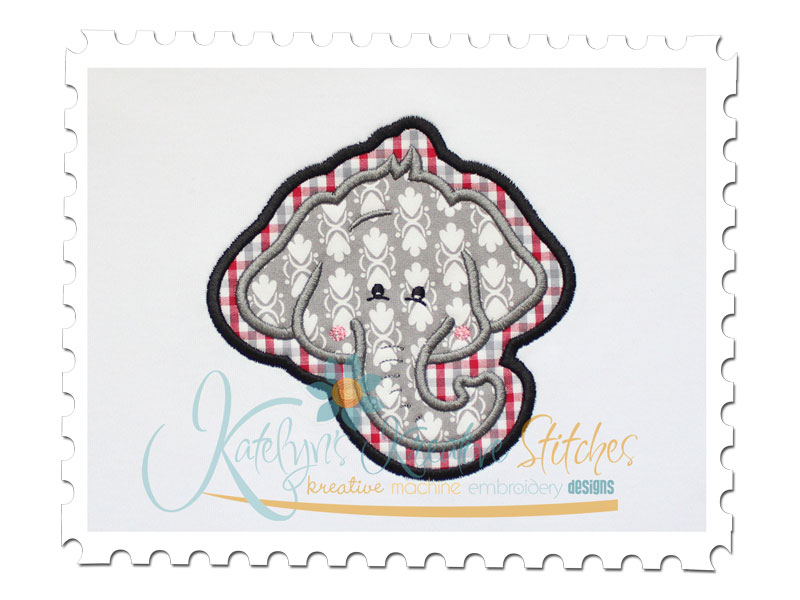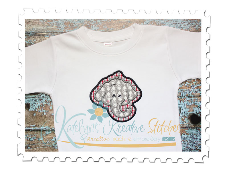 Our Elephant Head embroidery applique will fit the 4x4, 5x7, 6x10 and 9x9 hoop sizes. Perfect for childrens apparel.