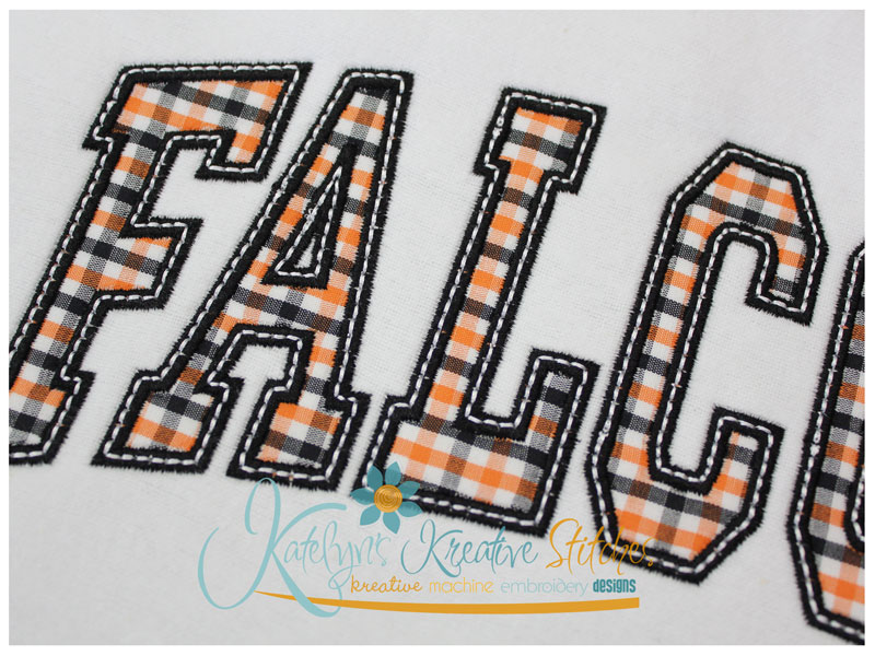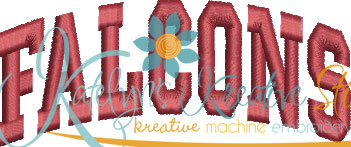 Our Arched Mascot designs will come in 5 sizes. The 5x7, 6x10, 8x12 and 8x14 will be applique. The smaller 4x4 size will be in a satin stitch. These will be great for school sweatshirts and tees. The 4x4 size will be perfect for polo's too.