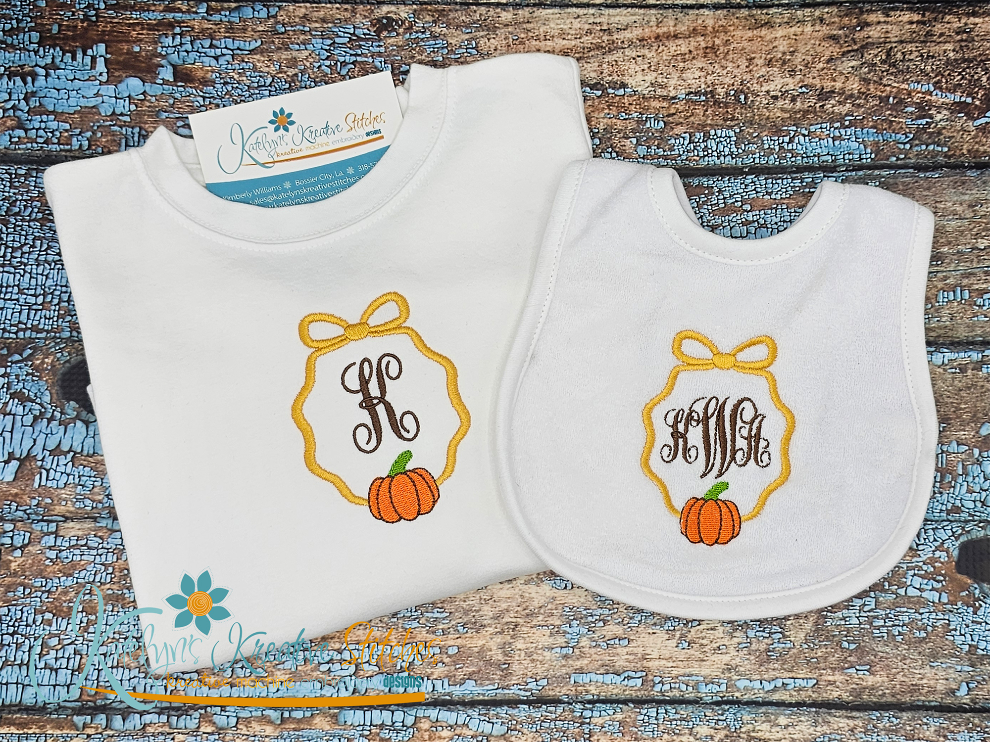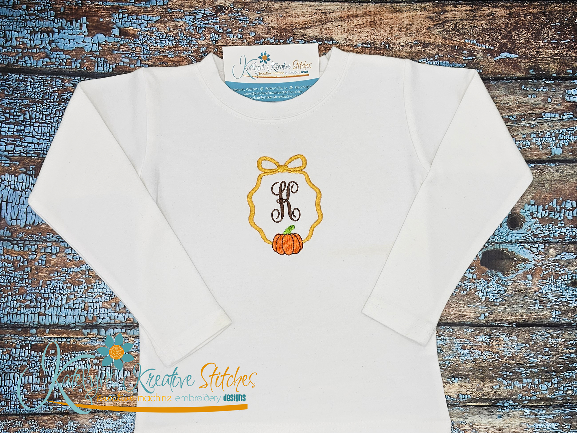 Our Fall Bow Monogram Frame with Pumpkin is super cute for Fall. This frame will come in 5 sizes. It will fit the 3x3, 4x4, 5x5, 5x7 and 8x8.