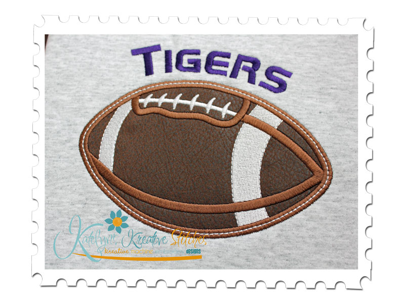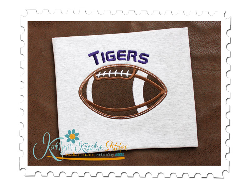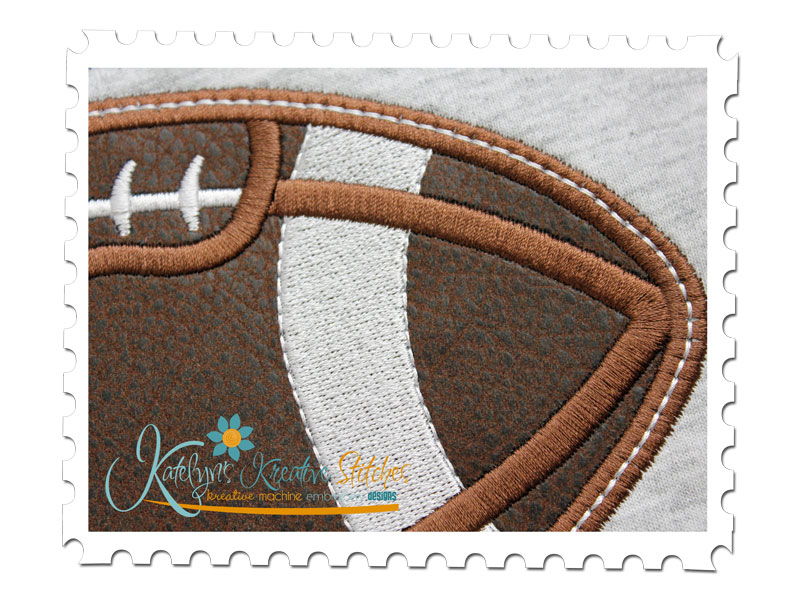 This Football applique is one of my favorites. It will fit the 4x4, 5x7 and 6x10 hoop sizes.