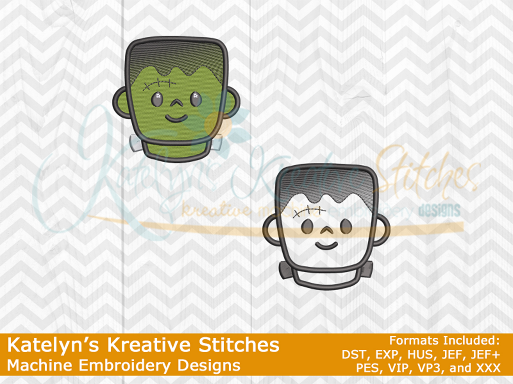 Our Frankenstein icon embroidery design will come in both a filled and outline version. One will be a mutli colored fill stitch and the other will be a single colored satin outline. This design will fit the 2x2, 3x3 and 4x4 hoop sizes. They can be mixed and matched to create your own icon embroidery designs, like our "Happy Halloween" design. They are also great for monogrammed jackets, sweatshirts, tees, hoodies, blankets, towels and totes.