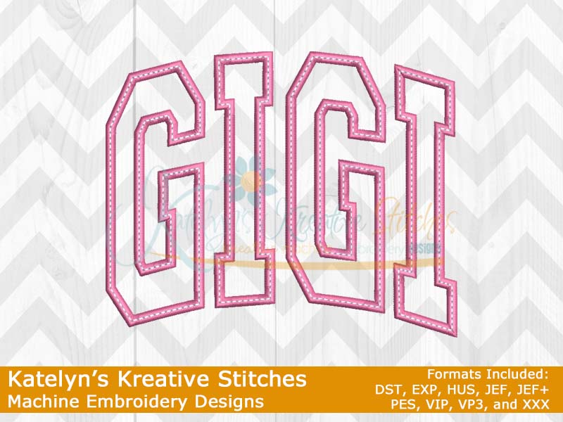Our Arched designs will come in 5 sizes. The 5x7, 6x10, 8x12 and 8x14 will be applique. The smaller 4x4 size will be in a satin stitch. These will be great for sweatshirts and tees. The 4x4 size will be perfect for polo's too.