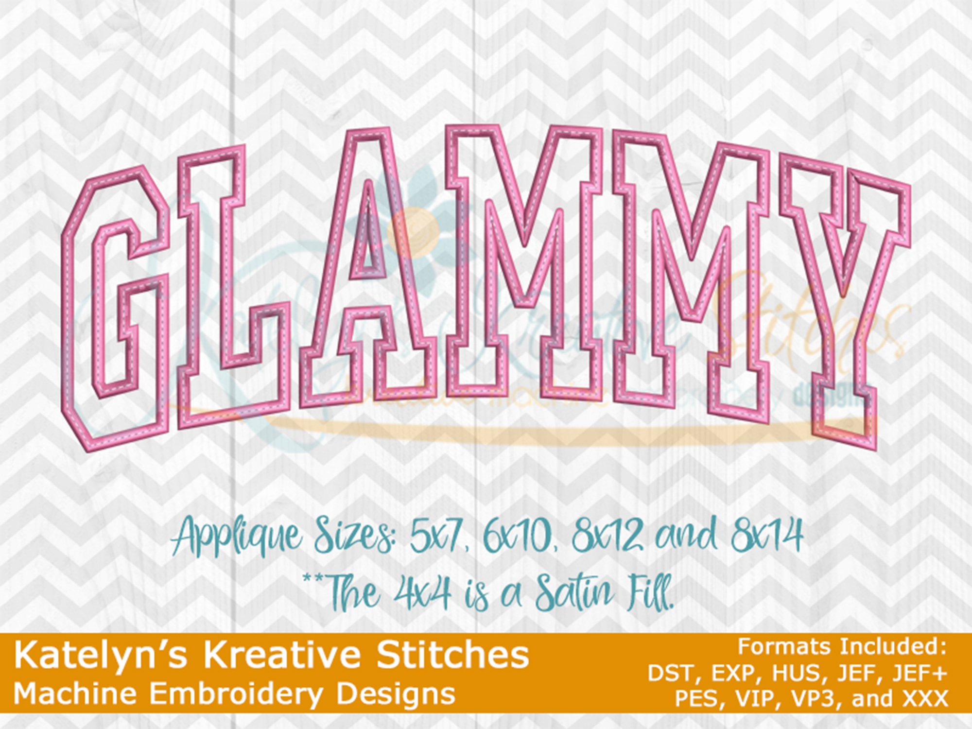 Our Arched designs will come in 5 sizes.  The 5x7, 6x10, 8x12 and 8x14 will be applique.  The smaller 4x4 size will be in a satin stitch.  These will be great for sweatshirts and tees.  The 4x4 size will be perfect for polo's too.