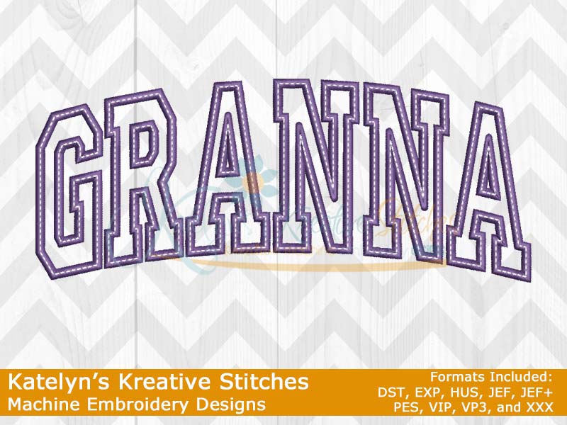 Our Arched designs will come in 5 sizes. The 5x7, 6x10, 8x12 and 8x14 will be applique. The smaller 4x4 size will be in a satin stitch. These will be great for sweatshirts and tees. The 4x4 size will be perfect for polo's too.