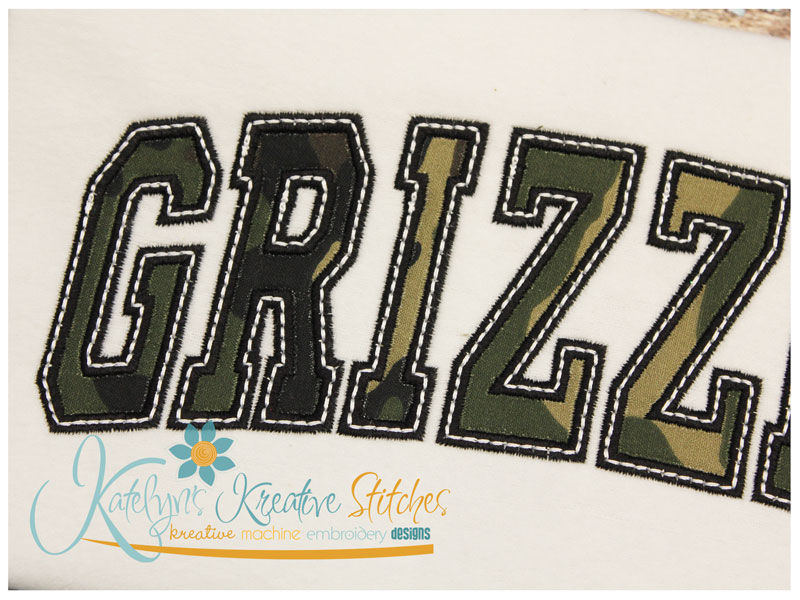 Our Arched Mascot designs will come in 5 sizes. The 5x7, 6x10, 8x12 and 8x14 will be applique. The smaller 4x4 size will be in a satin stitch. These will be great for school sweatshirts and tees. The 4x4 size will be perfect for polo's too.