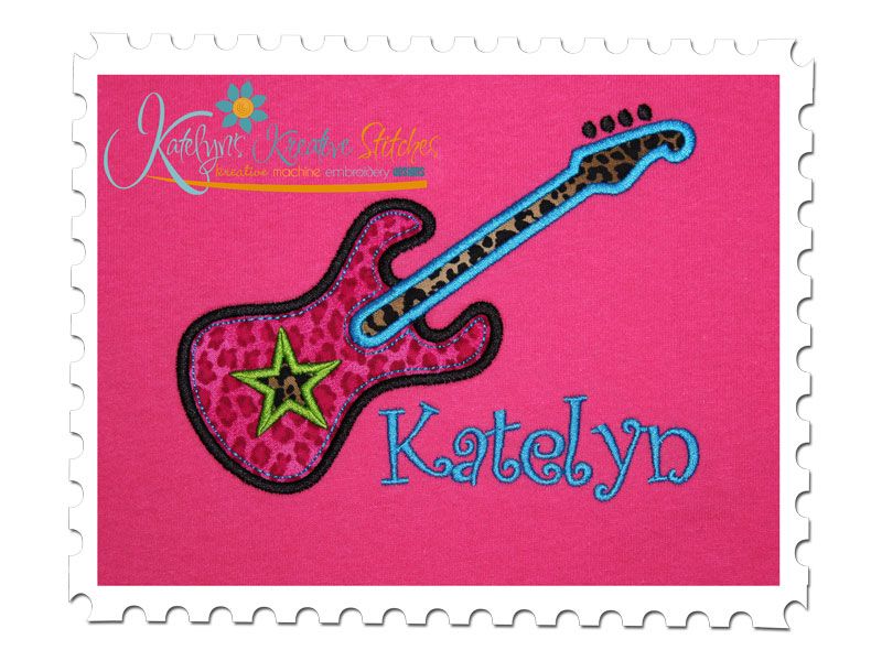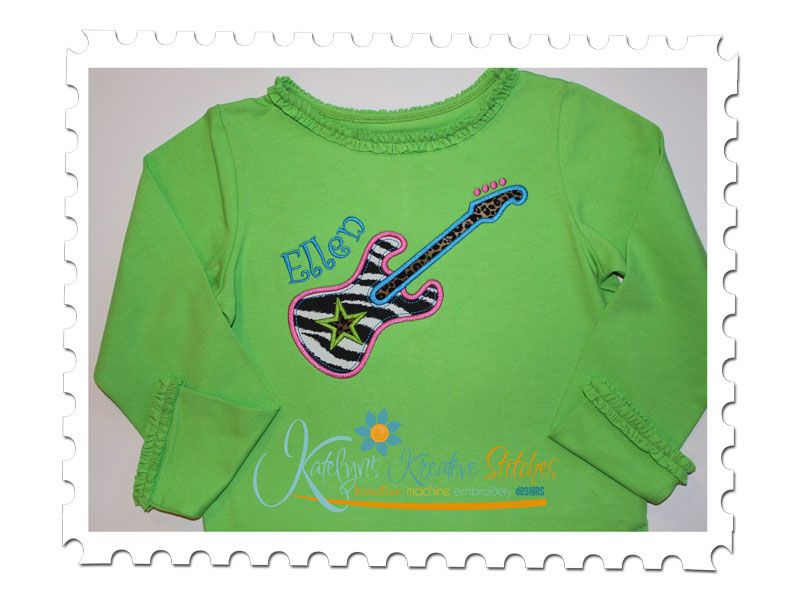 How about an Adorable Guitar Applique? Perfect for Tees, Towels and Totes. This one will fit the 4x4, 5x7 and 6x10 hoop sizes.