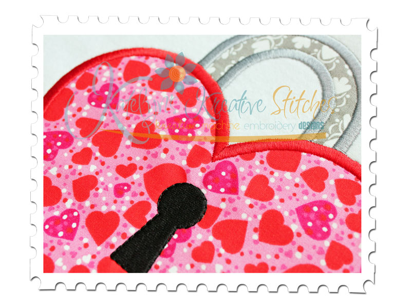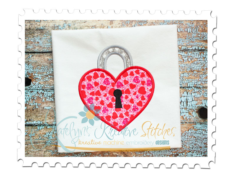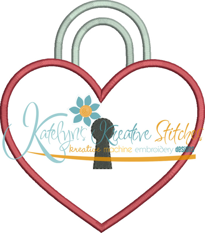 Our Heart Lock Applique will come in four sizes to fit the 4x4, 5x7, 6x10 and 9x9 hoop sizes.