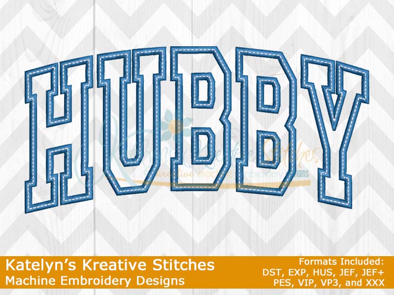Our Arched designs will come in 5 sizes. The 5x7, 6x10, 8x12 and 8x14 will be applique. The smaller 4x4 size will be in a satin stitch. These will be great for sweatshirts and tees. The 4x4 size will be perfect for polo's too.
