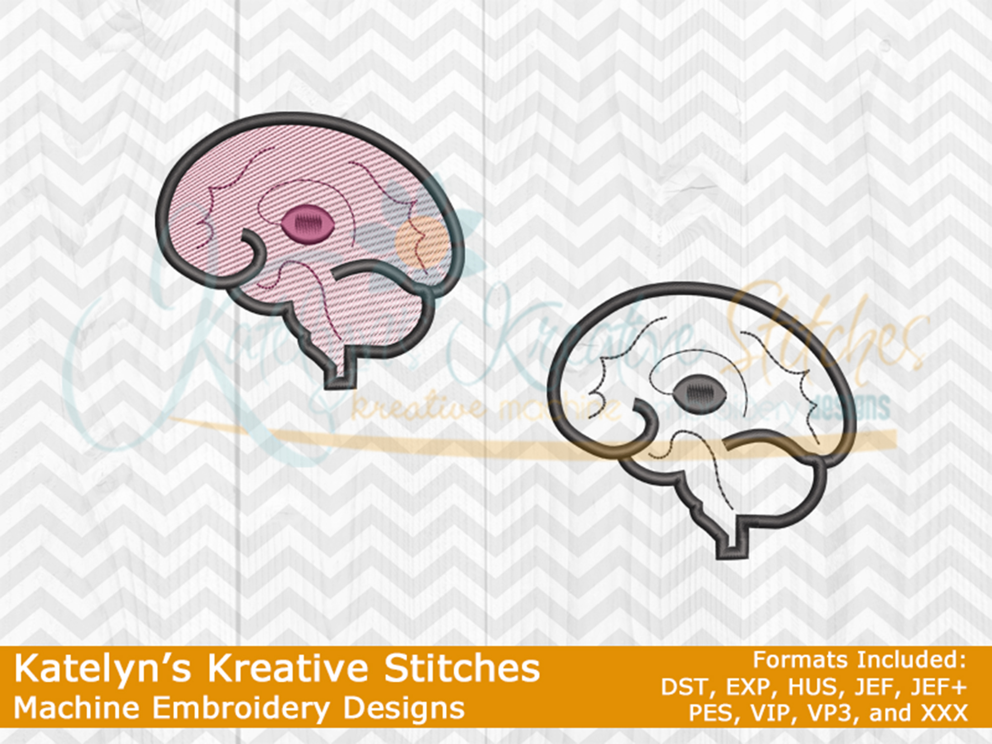 Our Human Brain embroidery design will come in both a filled and outline version. One will be a mutli colored fill stitch and the other will be a single colored satin outline. This design will fit the 2x2, 3x3 and 4x4 hoop sizes. They can be mixed and matched to create your own icon embroidery designs, like our XRay Tech Life design. They are also great for monogrammed jackets, sweatshirts, tees, hoodies, blankets, towels and totes.