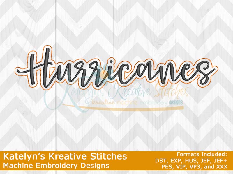 Our Hurricanes Script will come in 5 sizes for a quick and simple stitch out. They will fit the 4x4, 5x7, 6x10, 8x12 and 8x14 hoop sizes. These will be great for school tees, sweatshirts, hoodies, blankets, bags and much more. The 4x4 size will be perfect for polo's. Please refer to your .pdf files for design layout and color chart. Each step is labeled on the .pdf files.