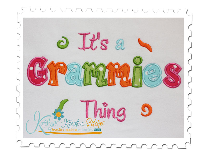 Our "It's a Grammies Thing" is an applique design perfect for anyone who loves their Grammies. It's setup for a multi color stitch out however you are welcome to change the colors to what you'd like. It will fit the 5x7, 6x10 and 11x7 hoop sizes. Don't forget to look at the included .pdf files for more information.