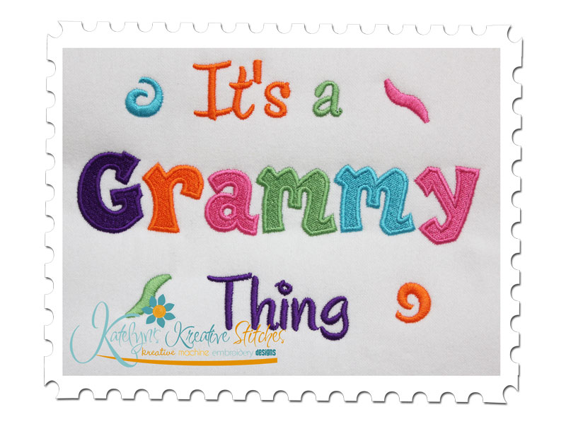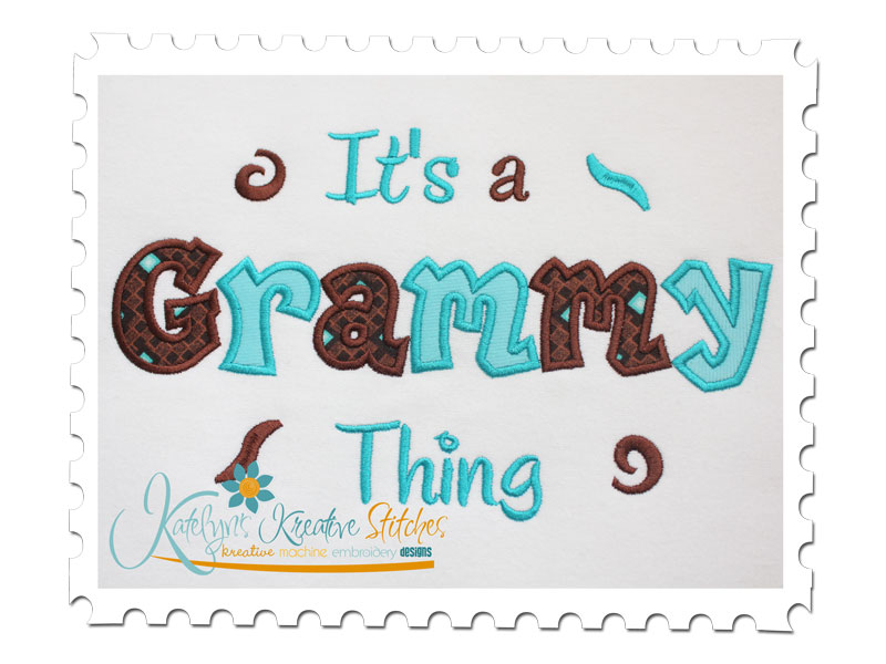 Our "It's a Grammy Thing" is an applique design perfect for anyone who loves their Grammy. It's setup for a multi color stitch out however you are welcome to change the colors to what you'd like. It will fit the 5x7, 6x10 and 11x7 hoop sizes. Don't forget to look at the included .pdf files for more information.