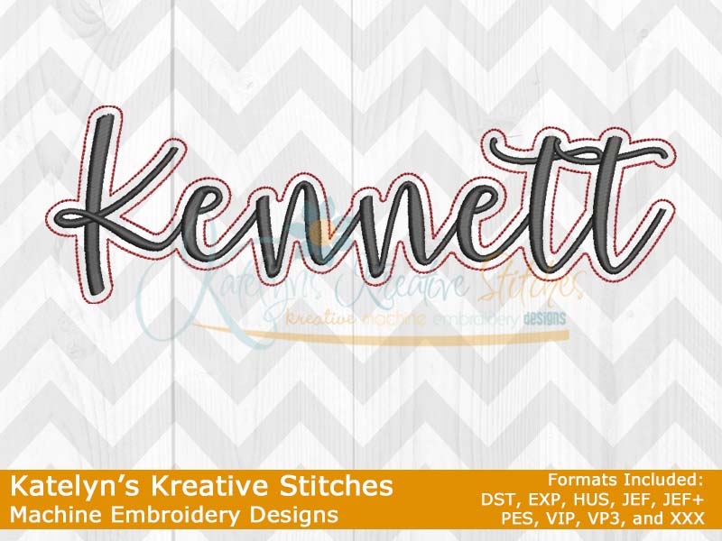 Our Kennett Script will come in 5 sizes for a quick and simple stitch out. They will fit the 4x4, 5x7, 6x10, 8x12 and 8x14 hoop sizes. These will be great for tees, sweatshirts, hoodies, blankets, bags and much more. The 4x4 size will be perfect for polo's. Please refer to your .pdf files for design layout and color chart. Each step is labeled on the .pdf files.
