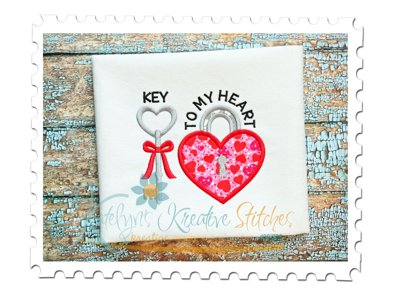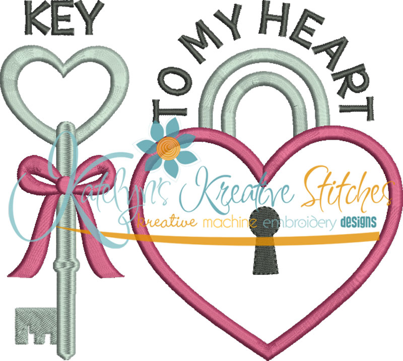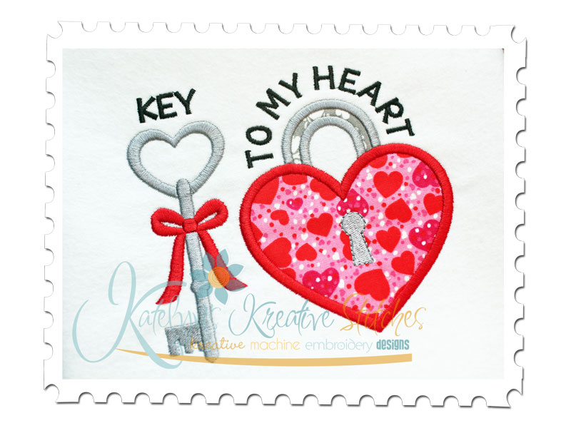 Our Key to My Heart Applique will come in three sizes to fit the 4x4, 5x7 and 6x10 hoop sizes.