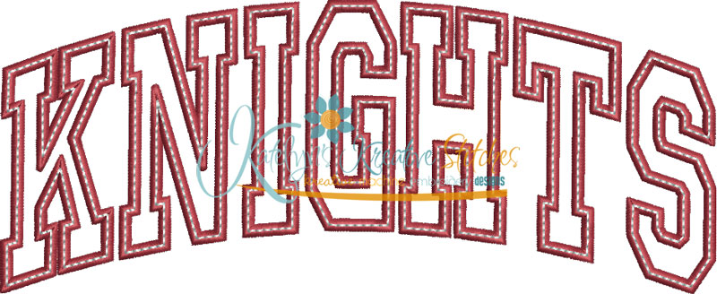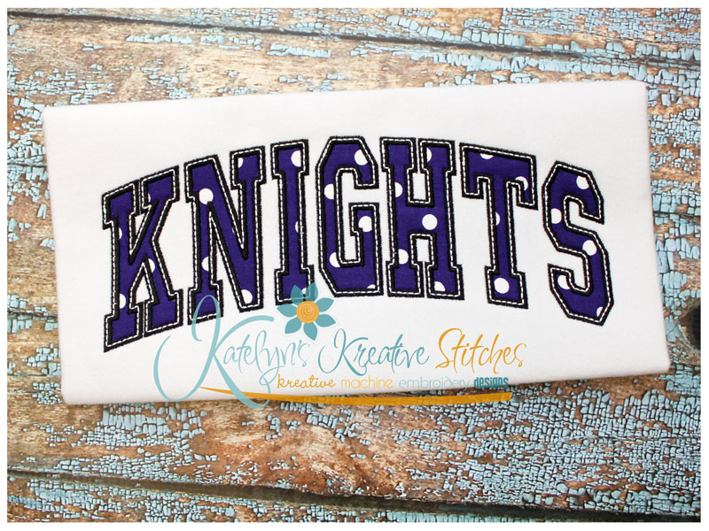 Our Arched Mascot designs will come in 5 sizes. The 5x7, 6x10, 8x12 and 8x14 will be applique. The smaller 4x4 size will be in a satin stitch. These will be great for school sweatshirts and tees. The 4x4 size will be perfect for polo's too.