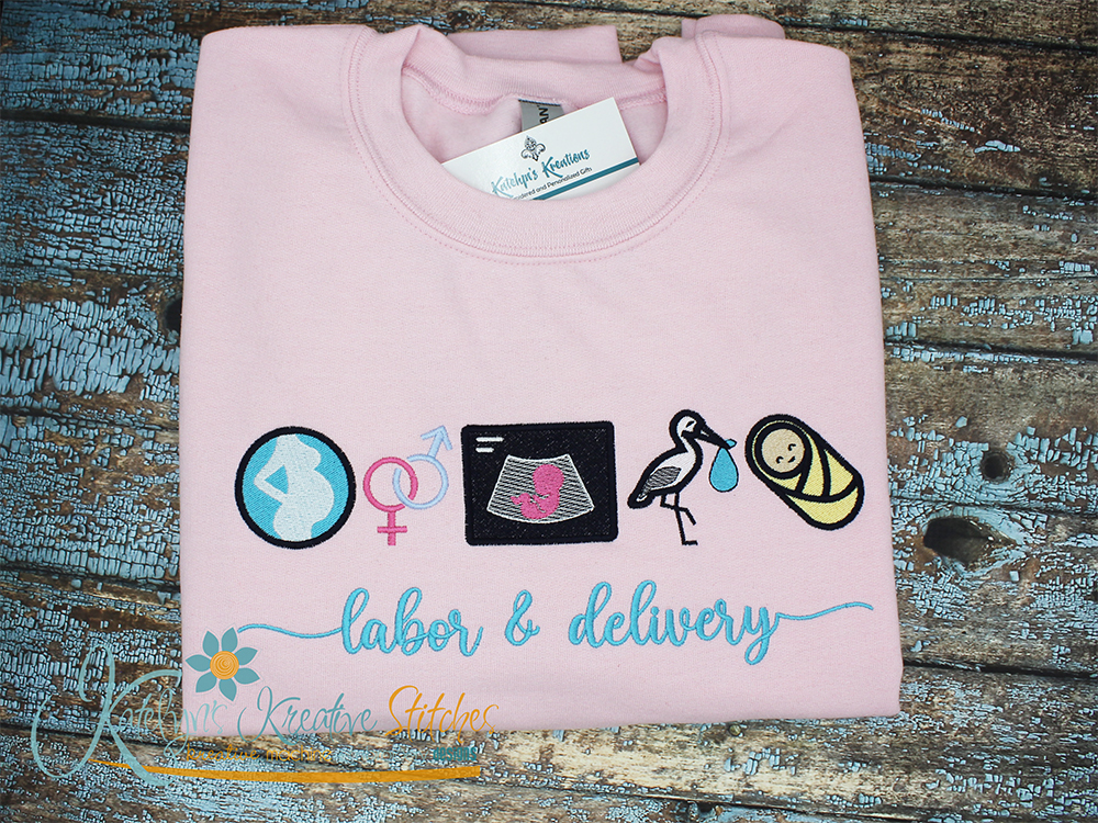 Labor and Delivery Icon Embroidery - Filled and Outline Versions