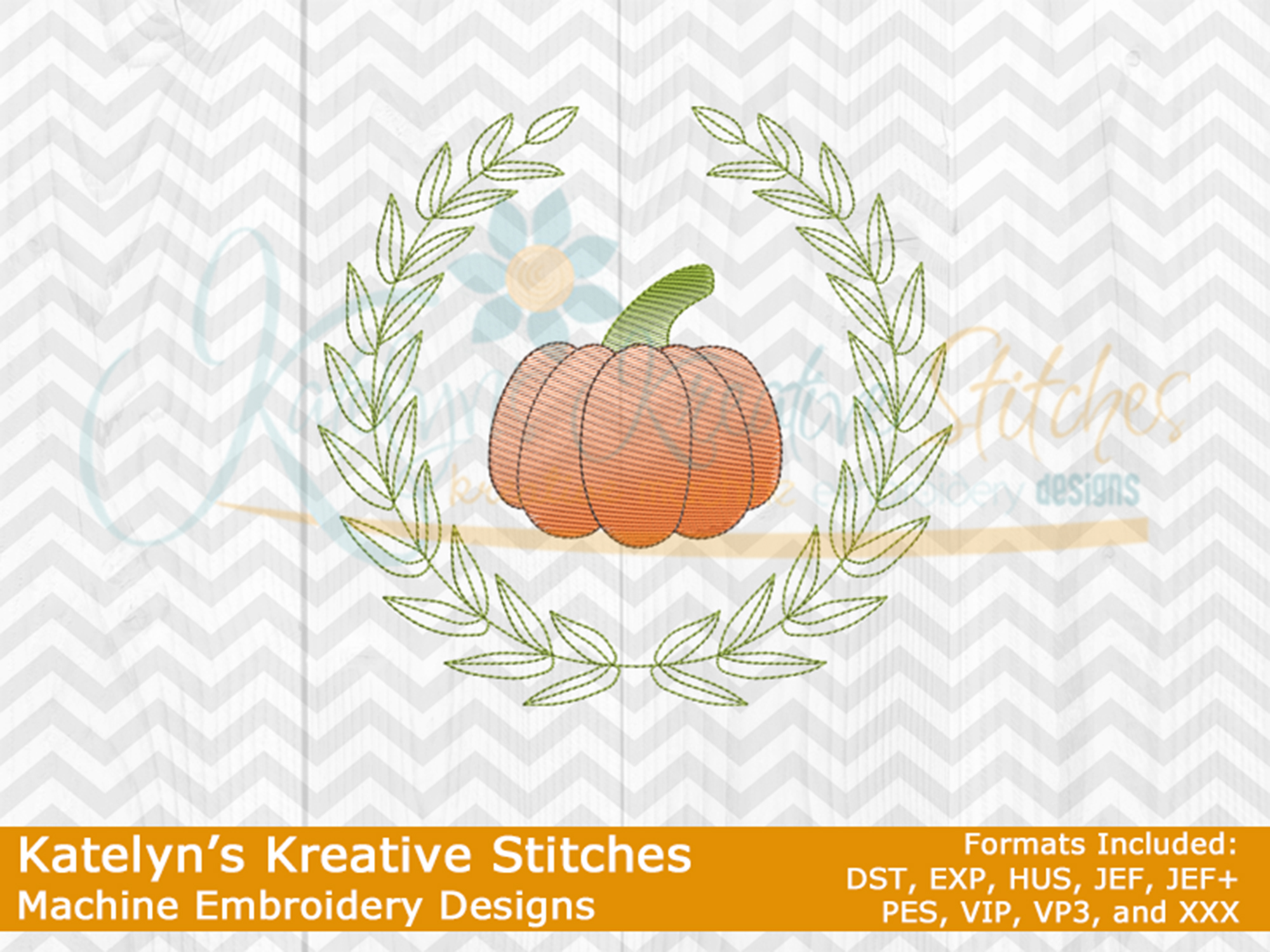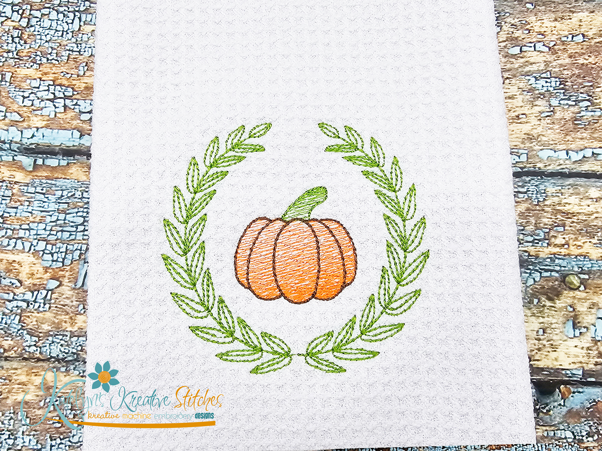 This Laurel Wreath with Sketch Pumpkin is the perfect accent to use in your home decor or embroidery projects for Fall. This design is offered in 6 sizes. It will fit the 2x2, 3x3, 4x4, 5x7, 6x10 or 8x8 hoops.
