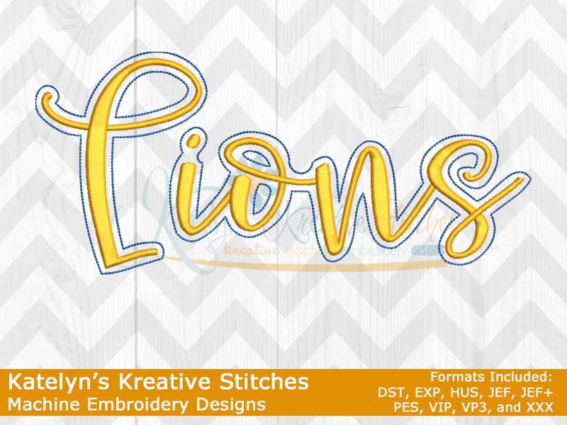 Our Lions Script will come in 5 sizes for a quick and simple stitch out. They will fit the 4x4, 5x7, 6x10, 8x12 and 8x14 hoop sizes. These will be great for school tees, sweatshirts, hoodies, blankets, bags and much more. The 4x4 size will be perfect for polo's. Please refer to your .pdf files for design layout and color chart. Each step is labeled on the .pdf files.