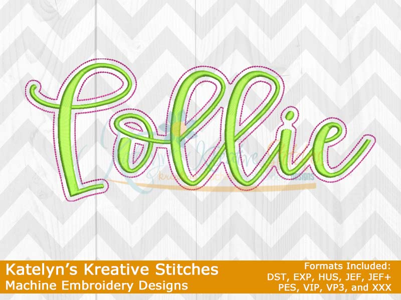 **Please note: This file is not setup for applique. However, you are welcome to run the outline as a tackdown stitch first and then stitch the center satin letters.