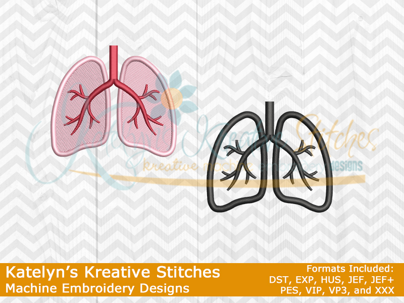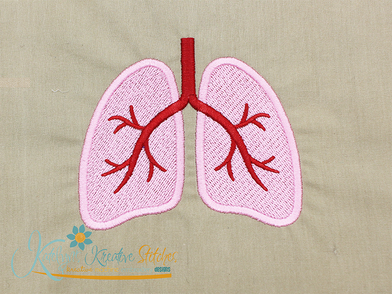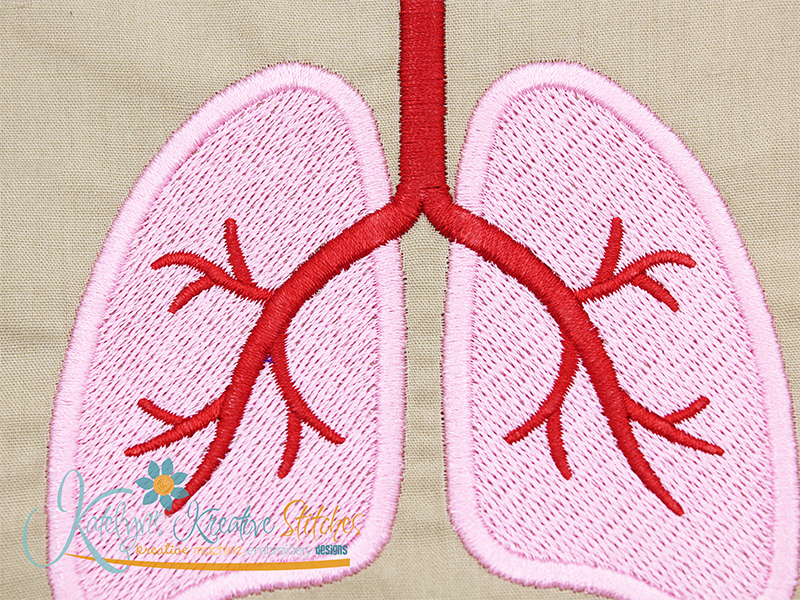 Our Lungs embroidery design will come in both a filled and outline version. One will be a mutli colored fill stitch and the other will be a single colored satin outline. This design will fit the 2x2, 3x3 and 4x4 hoop sizes. They can be mixed and matched to create your own icon embroidery designs, like our Respiratory Life design. They are also great for monogrammed jackets, sweatshirts, tees, hoodies, blankets, towels and totes.