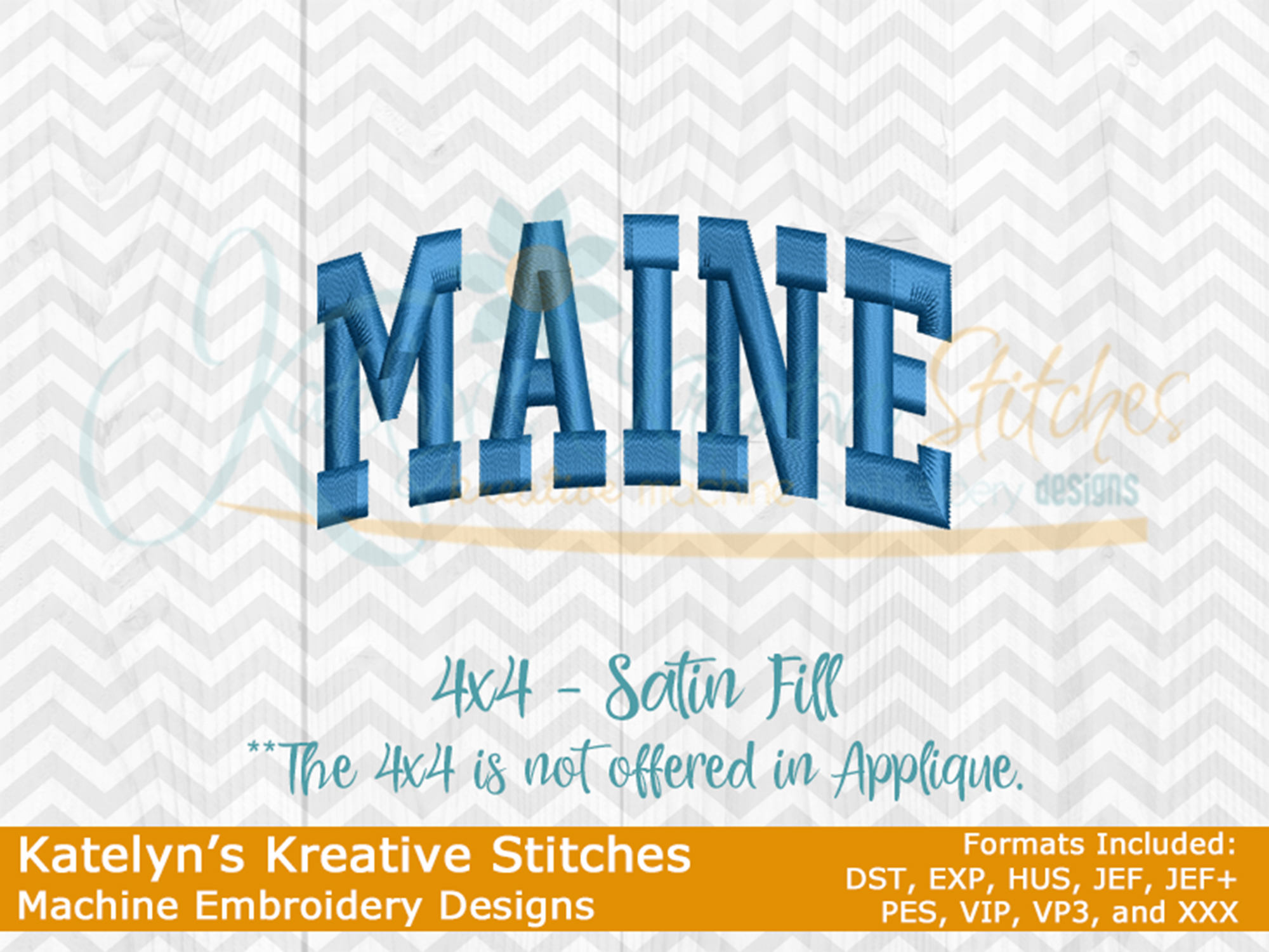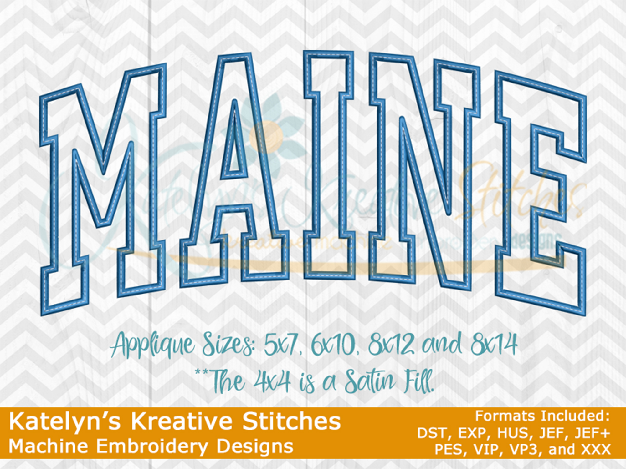 Our Arched designs will come in 5 sizes. The 5x7, 6x10, 8x12 and 8x14 will be applique. The smaller 4x4 size will be in a satin stitch. These will be great for sweatshirts and tees. The 4x4 size will be perfect for polo's too.