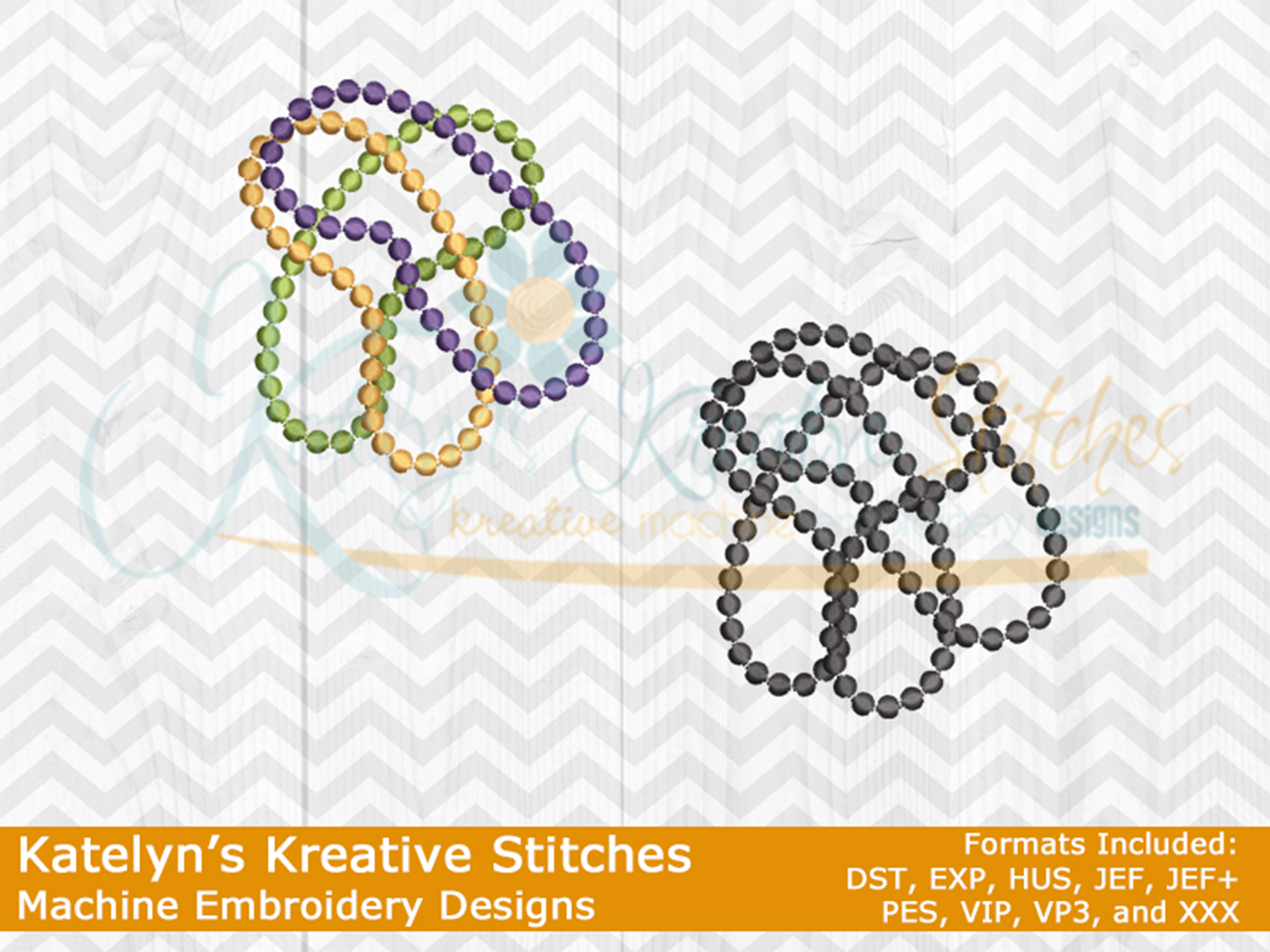 Mardi Gras Beads Icon Embroidery - Filled and Outline Versions