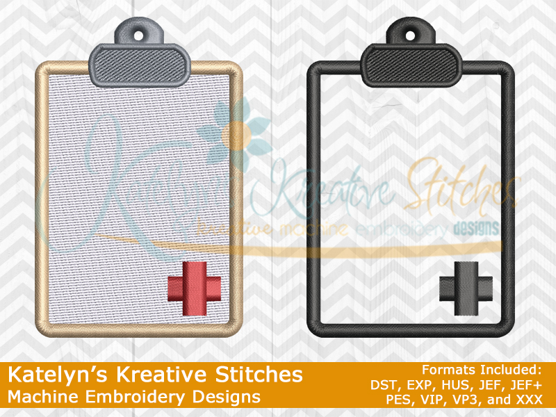 Our Medical Chart design will come in both a filled and outline version. One will be a mutli colored fill stitch and the other will be a single colored satin outline. This design will fit the 2x2, 3x3 and 4x4 hoop sizes. They can be mixed and matched to create your own icon embroidery designs, like our Nurse Life design. They are also great for monogrammed jackets, sweatshirts, tees, hoodies, blankets, towels and totes.