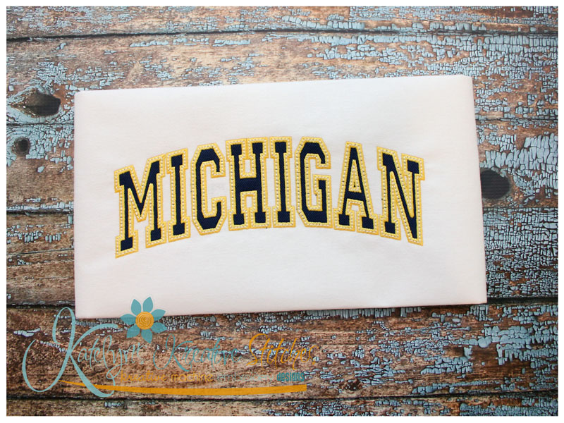 Our Arched Mascot designs will come in 5 sizes. The 5x7, 6x10, 8x12 and 8x14 will be applique. The smaller 4x4 size will be in a satin stitch. These will be great for school sweatshirts and tees. The 4x4 size will be perfect for polo's too.