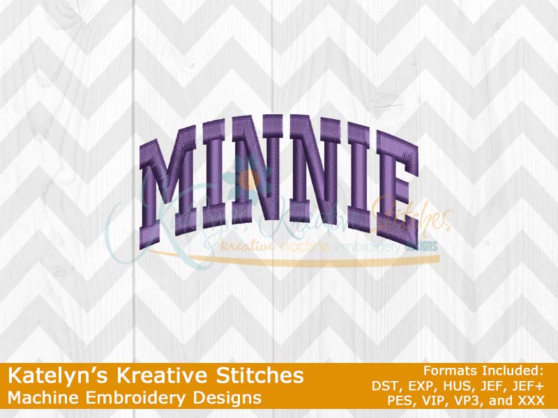 Our Arched designs will come in 5 sizes. The 5x7, 6x10, 8x12 and 8x14 will be applique. The smaller 4x4 size will be in a satin stitch. These will be great for sweatshirts and tees. The 4x4 size will be perfect for polo's too.