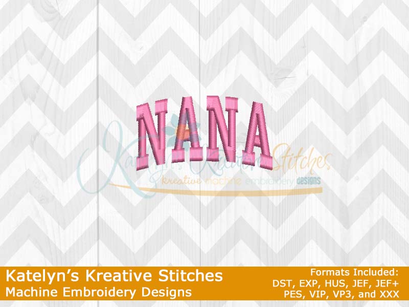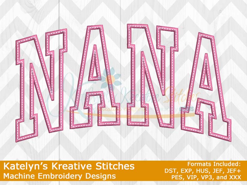 Our Arched designs will come in 5 sizes. The 5x7, 6x10, 8x12 and 8x14 will be applique. The smaller 4x4 size will be in a satin stitch. These will be great for sweatshirts and tees. The 4x4 size will be perfect for polo's too.