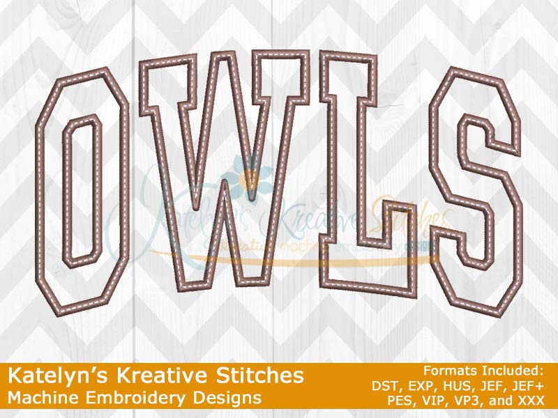 Our Arched Mascot designs will come in 5 sizes. Â The 5x7, 6x10, 8x12 and 8x14 will be applique. Â The smaller 4x4 size will be in a satin stitch. Â These will be great for school sweatshirts and tees. Â The 4x4 size will be perfect for polo's too.