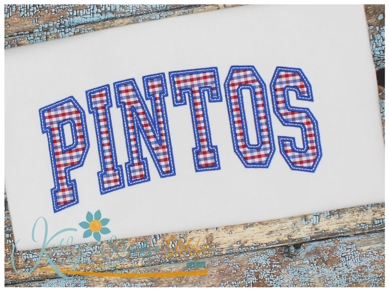 Our Arched Mascot designs will come in 5 sizes. The 5x7, 6x10, 8x12 and 8x14 will be applique. The smaller 4x4 size will be in a satin stitch. These will be great for school sweatshirts and tees. The 4x4 size will be perfect for polo's too.